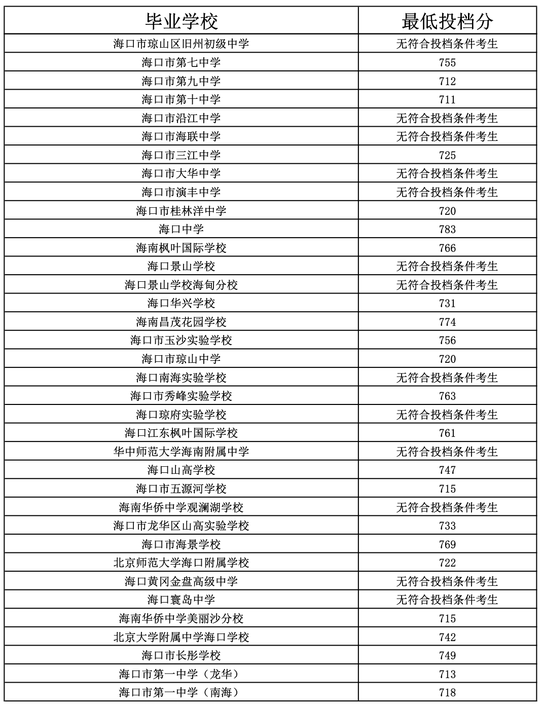 点击查看完整版:2022年海南省中招第一批指标到校投档分数线
