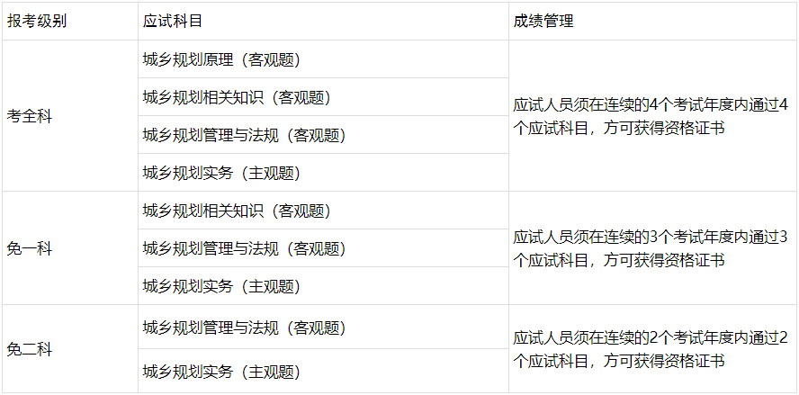 (二)通过全国统一考试取得一级注册建筑师资格证书并符合《注册城乡规划师职业资格制度规定》(以下简称《规定》)中注册城乡规划师职业资格考试报名条件的,可免试《城乡规划原理》和《城乡规划相关知识》科目,只参加《城乡规划管理与法规》和《城乡规划实务》2个科目的考试。