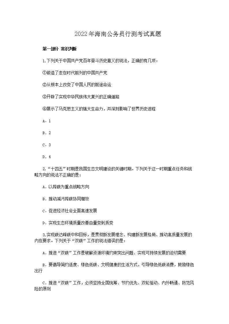 【文档名称】 2022年海南公务员行测考试真题(Word版).doc