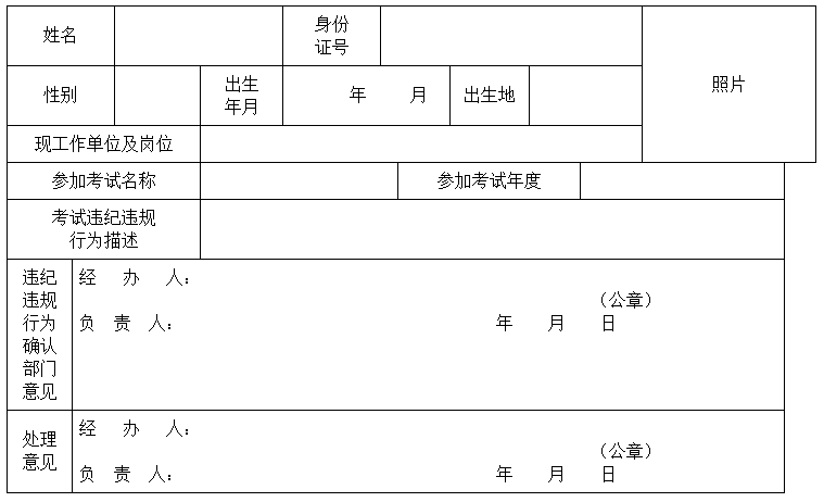 建立失信应试人员黑名单制度,加大失信联合惩戒力度,加强跨部门联动响应。完善“一处失信、处处受限”的联合惩戒机制,失信行为记入专业技术人员资格考试诚信档案库,诚信档案库的失信应试人员纳入全国信用信息共享平台。失信应试人员信息将视情况向社会公布或通报,并通知当事人所在单位,《个人诚信失信记录单》(附件2)放入个人档案,涉嫌犯罪的,移送司法机关处理。