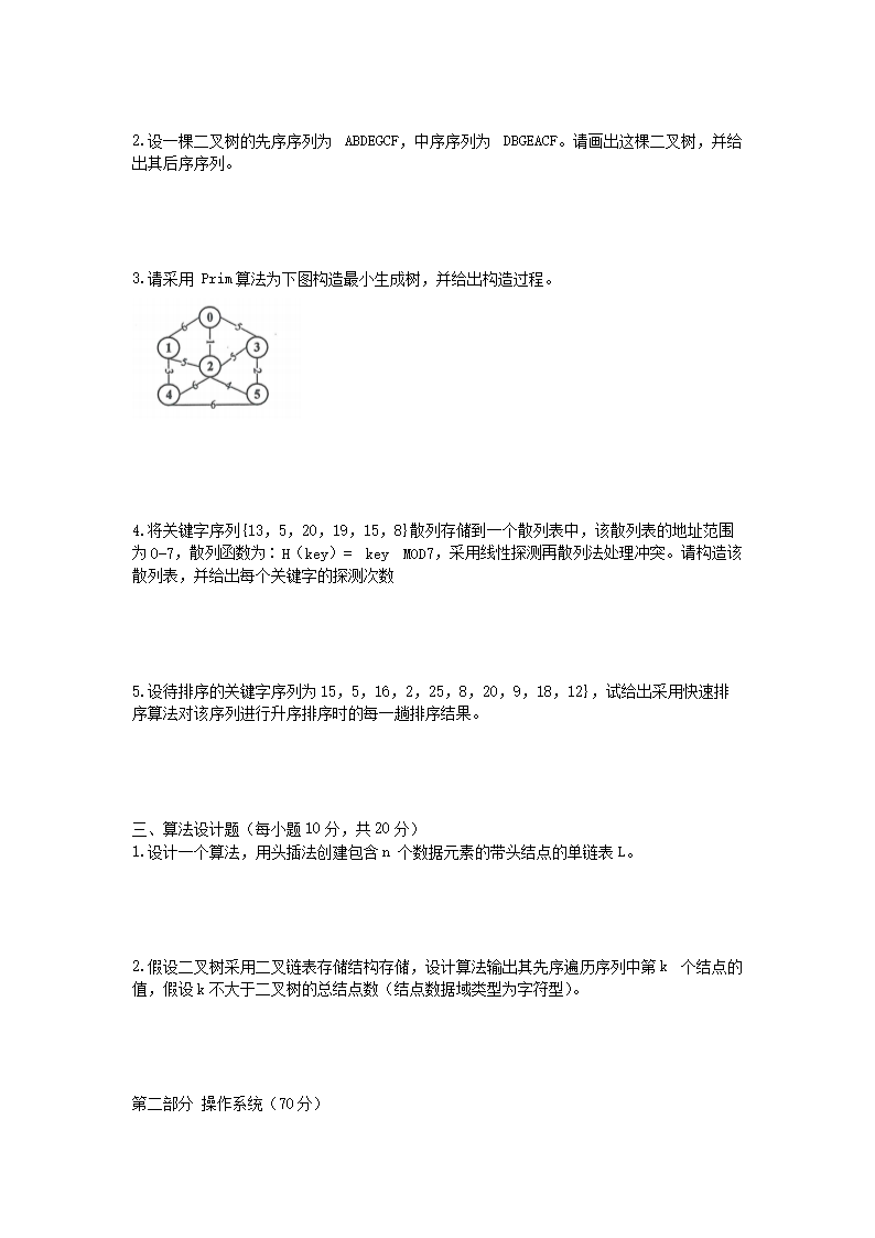 【文档名称】 2020年安徽师范大学计算机理论基础考研真题(Word版).doc