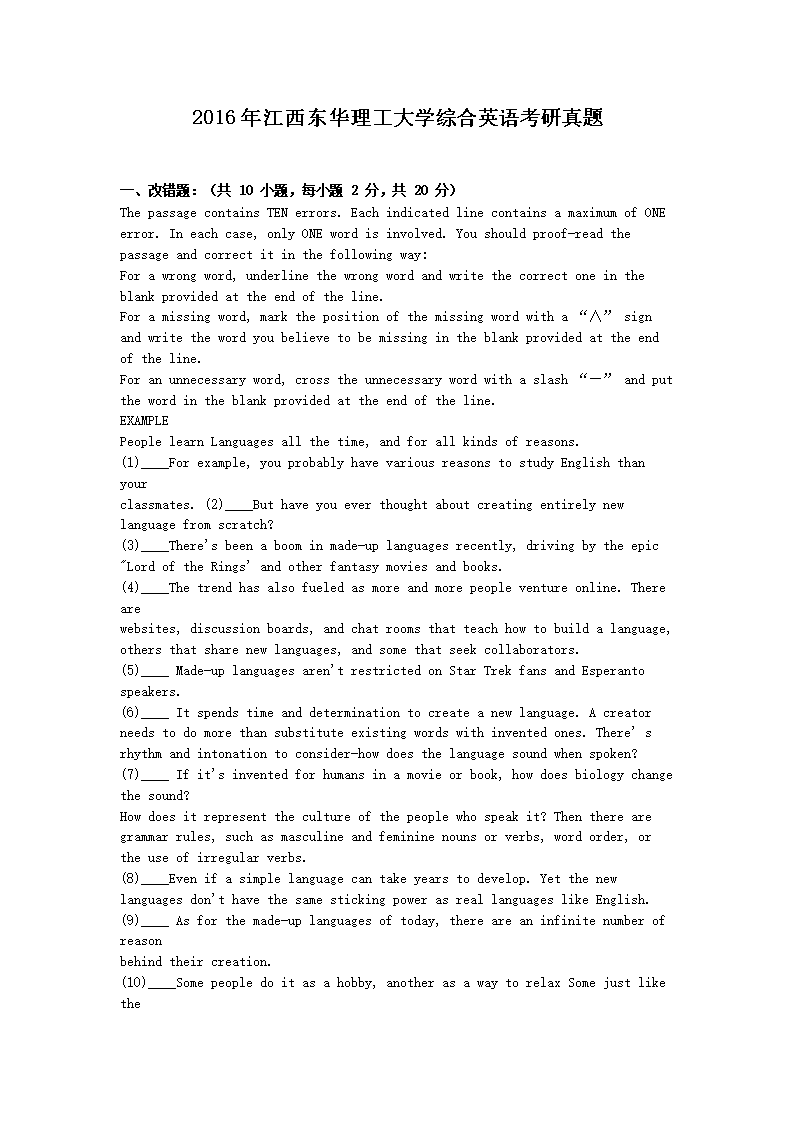 【文档名称】 2016年江西东华理工大学综合英语考研真题(Word版).doc