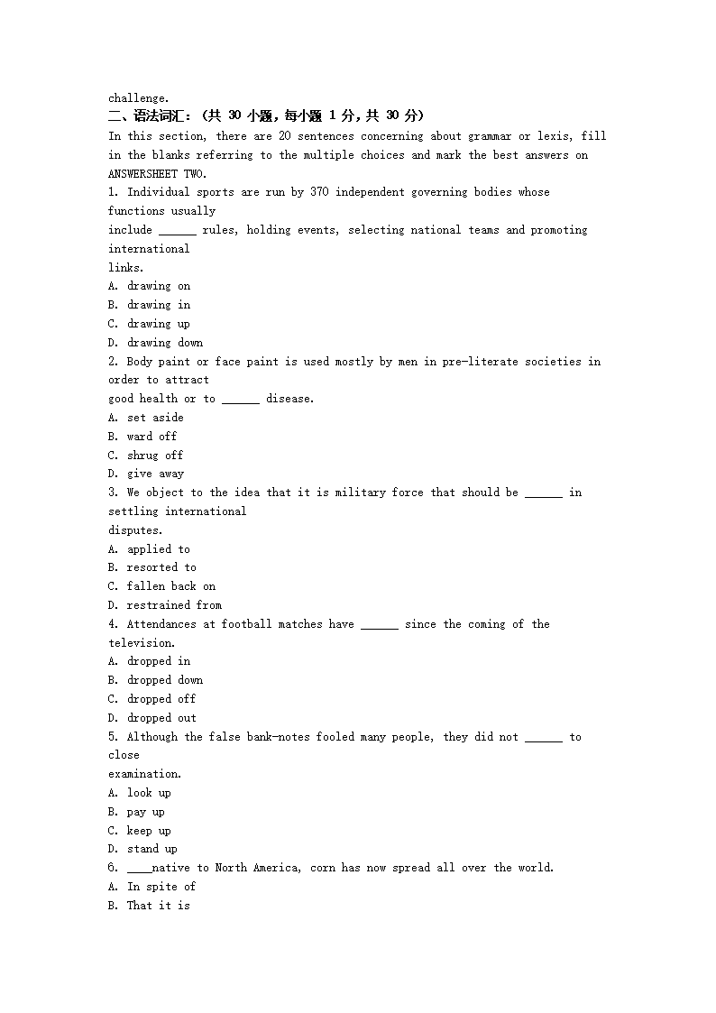 【文档预览】 无忧考网整理发布2016年江西东华理工大学综合英语考研真题(Word版),前五页预览如下: