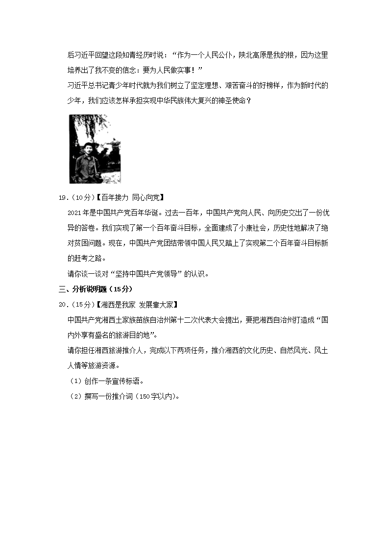 【文档名称】 2022年湖南湘西中考道德与法治试题及答案(Word版).doc