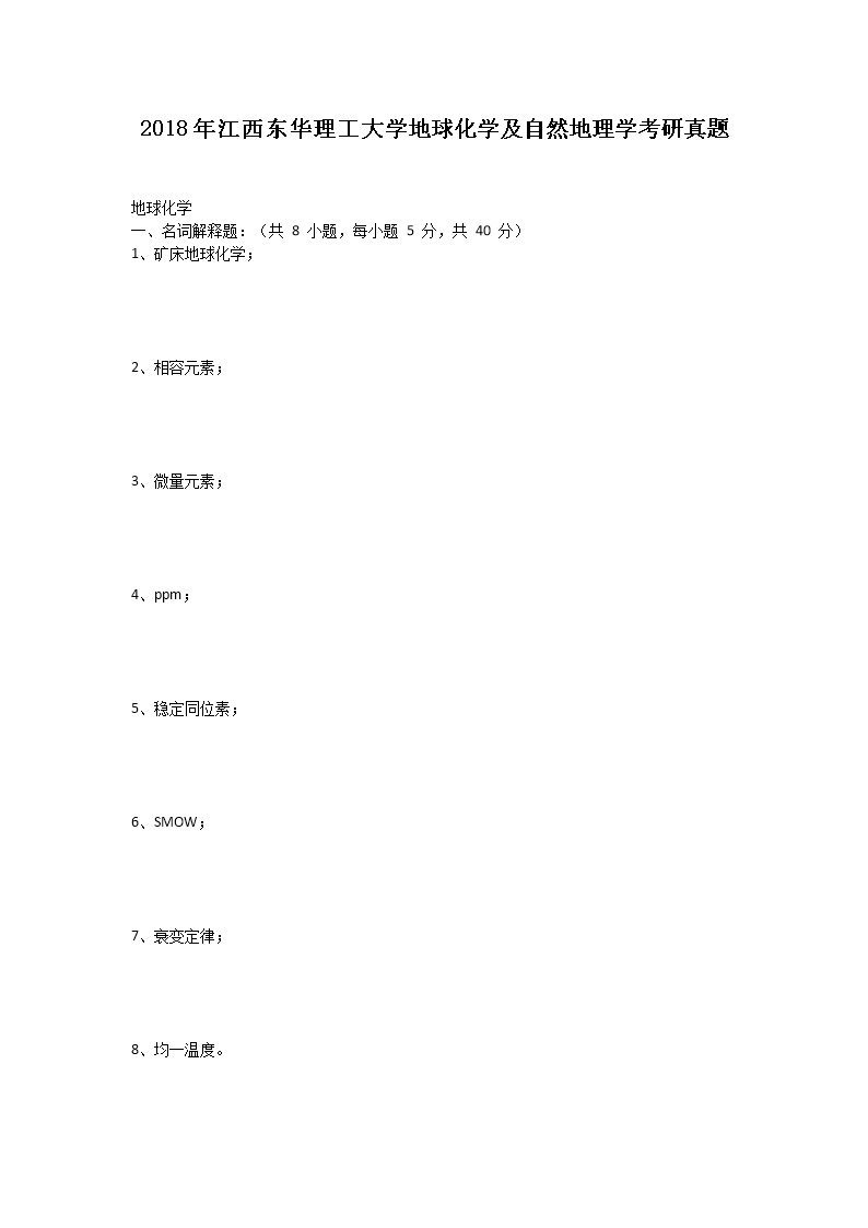 【文档名称】 2018年江西东华理工大学地球化学及自然地理学考研真题(Word版).doc