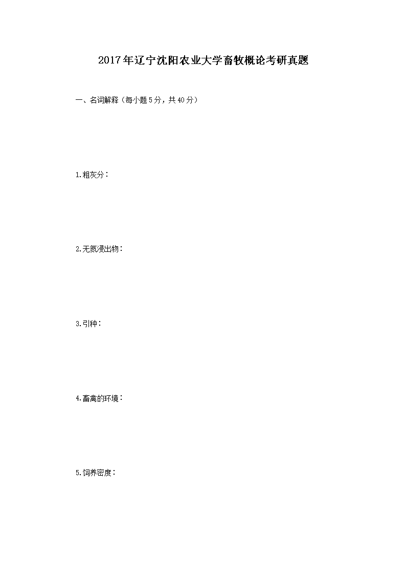 【文档名称】 2017年辽宁沈阳农业大学畜牧概论考研真题(Word版).doc