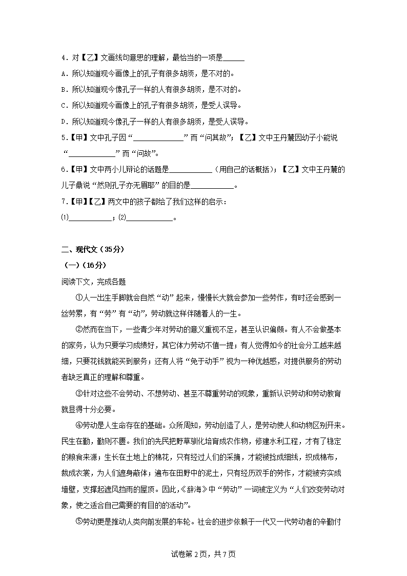 【文档名称】 2022年上海卢湾中考语文试题及答案(Word版).doc