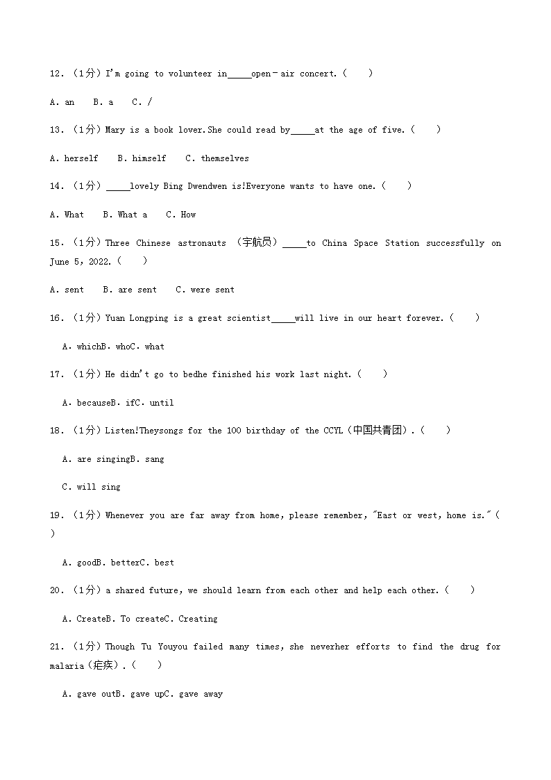 【文档名称】 2022年湖南省株洲市中考英语真题及答案(Word版).doc