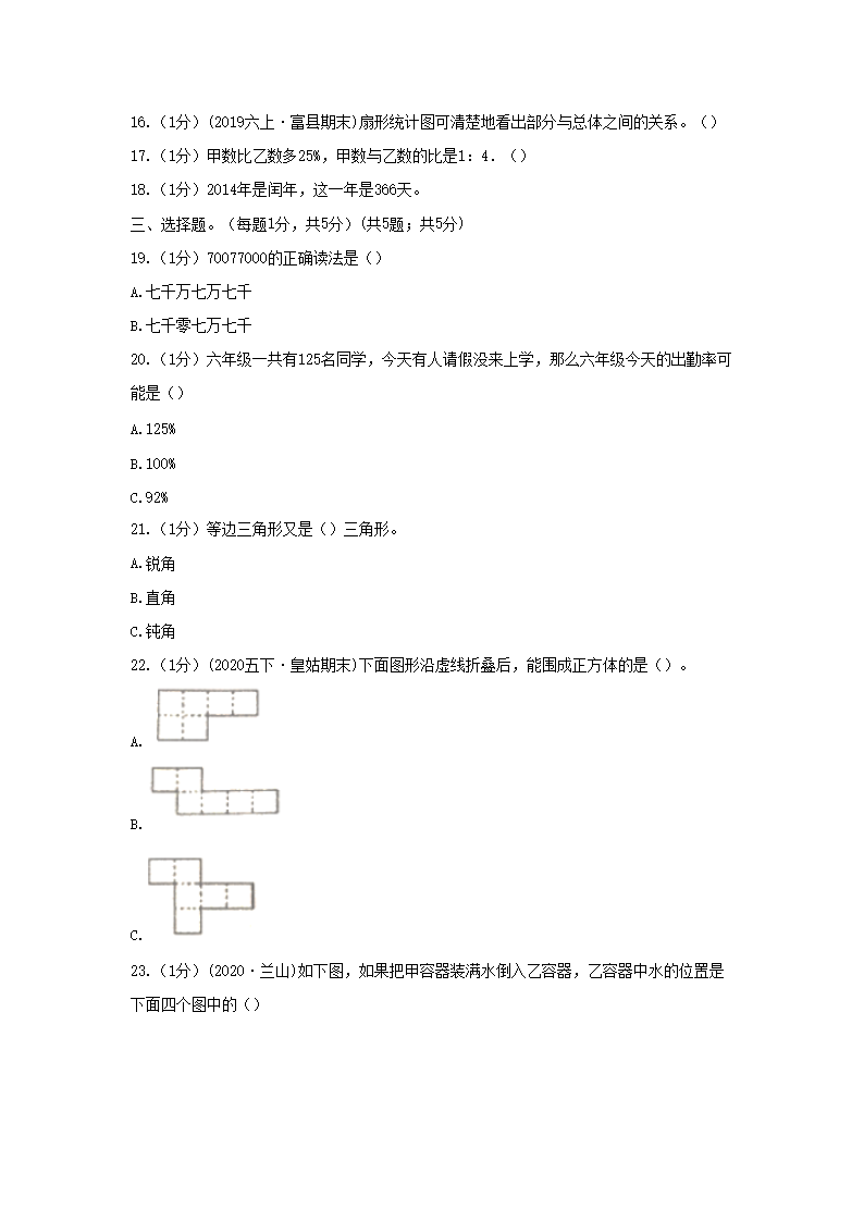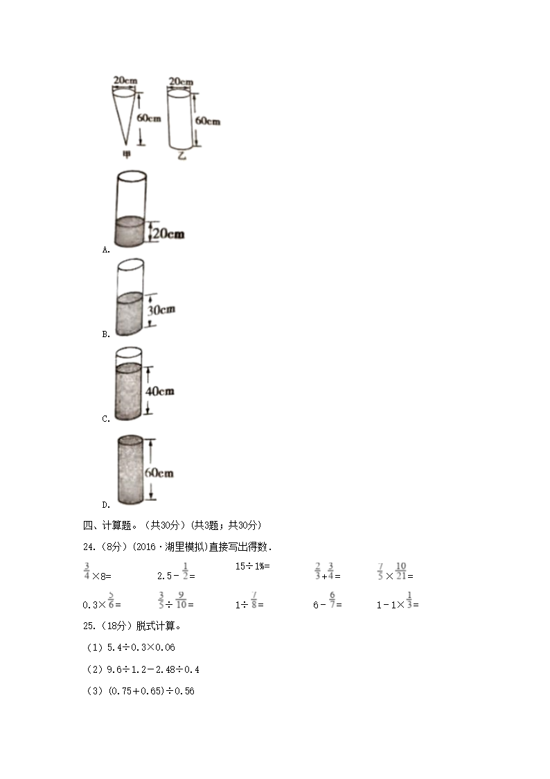 【文档预览】 无忧考网整理发布2021年辽宁盘锦小升初数学真题及答案(A卷)(Word版),前五页预览如下: