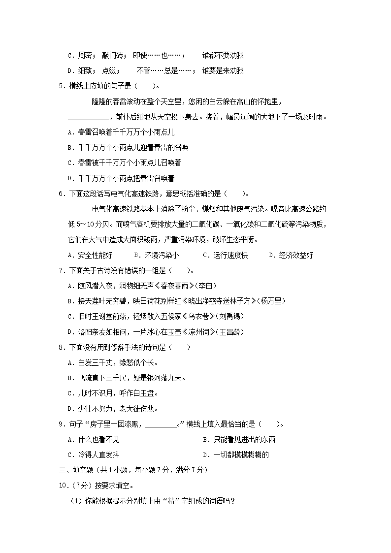 【文档名称】 2022年福建省福州市鼓楼区小升初语文考试真题及答案(Word版).doc