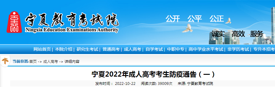 原文标题:宁夏2022年成人高考考生防疫通告(一)