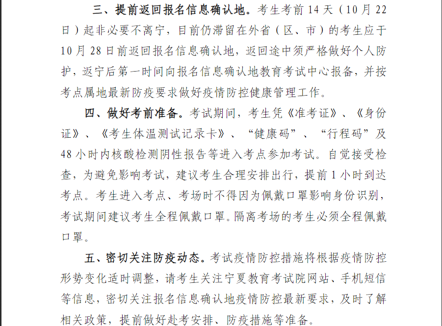 点击查看:宁夏2022年成人高考考生防疫通告(一)