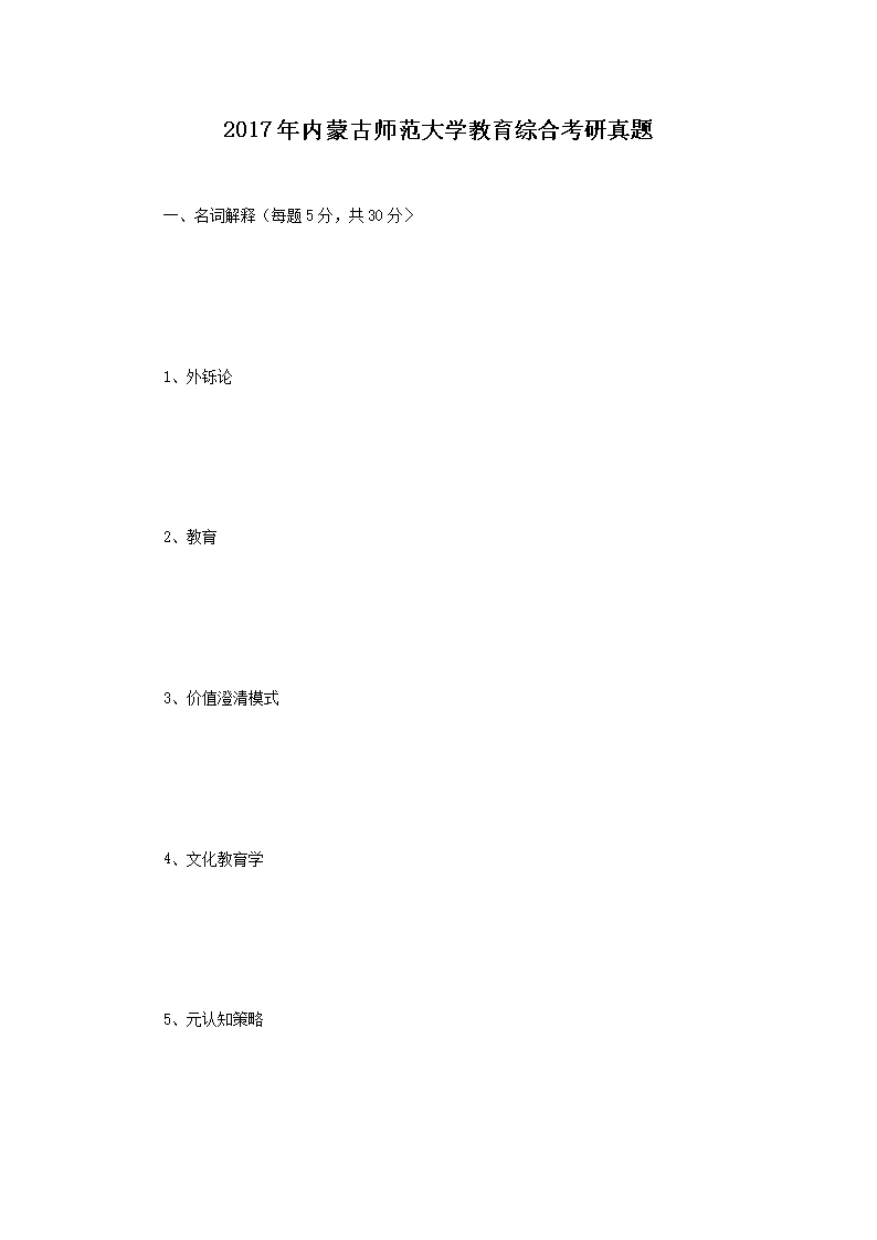 【文档名称】 2017年内蒙古师范大学教育综合考研真题(Word版).doc