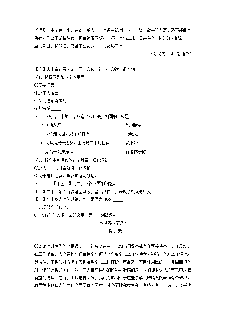 【文档预览】 无忧考网整理发布2022山东省菏泽市中考语文真题及答案(Word版),前五页预览如下: