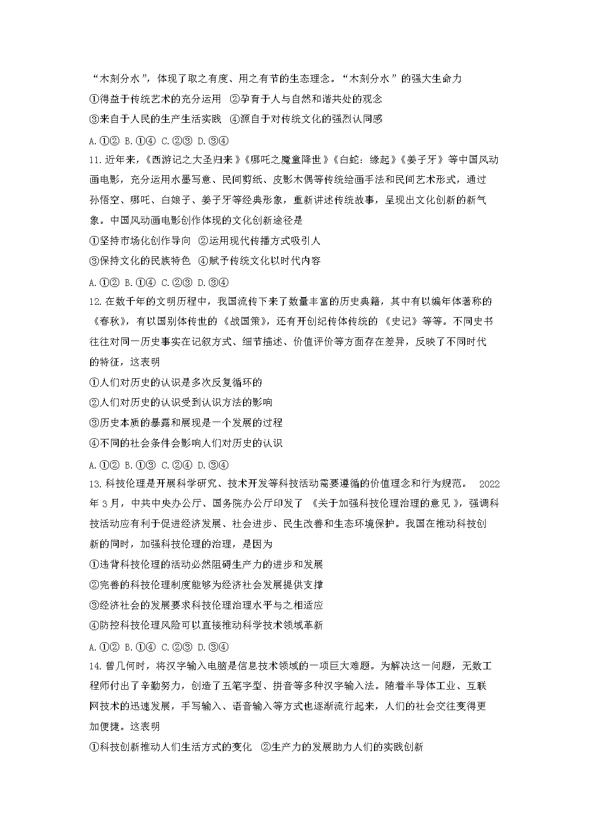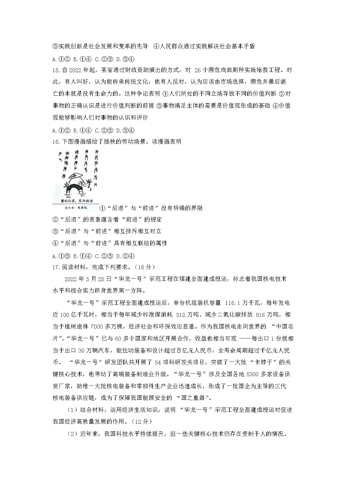 【文档名称】 2022年湖北高考政治真题及答案(Word版).doc