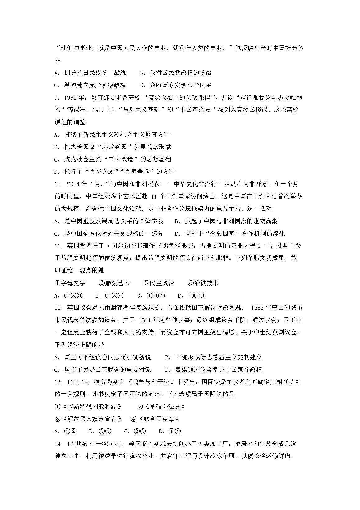 【文档名称】 2022年北京普通高中学业水平等级性考试历史真题及答案(Word版).doc