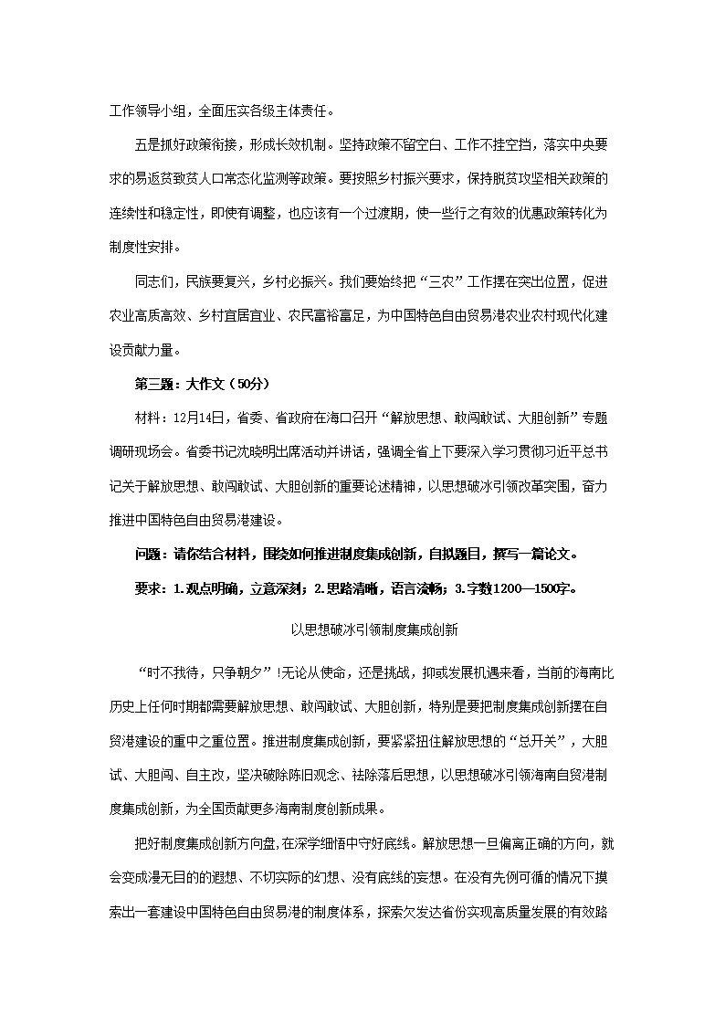 【文档预览】 无忧考网整理发布2021年1月16日海南省直机关遴选公务员考试真题及答案(Word版),前五页预览如下: