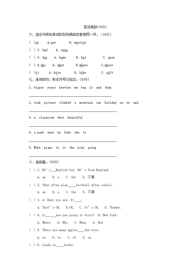 【文档预览】 无忧考网整理发布2021年辽宁沈阳小升初英语真题及答案(Word版),前五页预览如下: