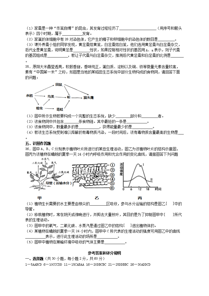 【文档名称】 2018年河南许昌中考生物真题及答案(Word版).doc