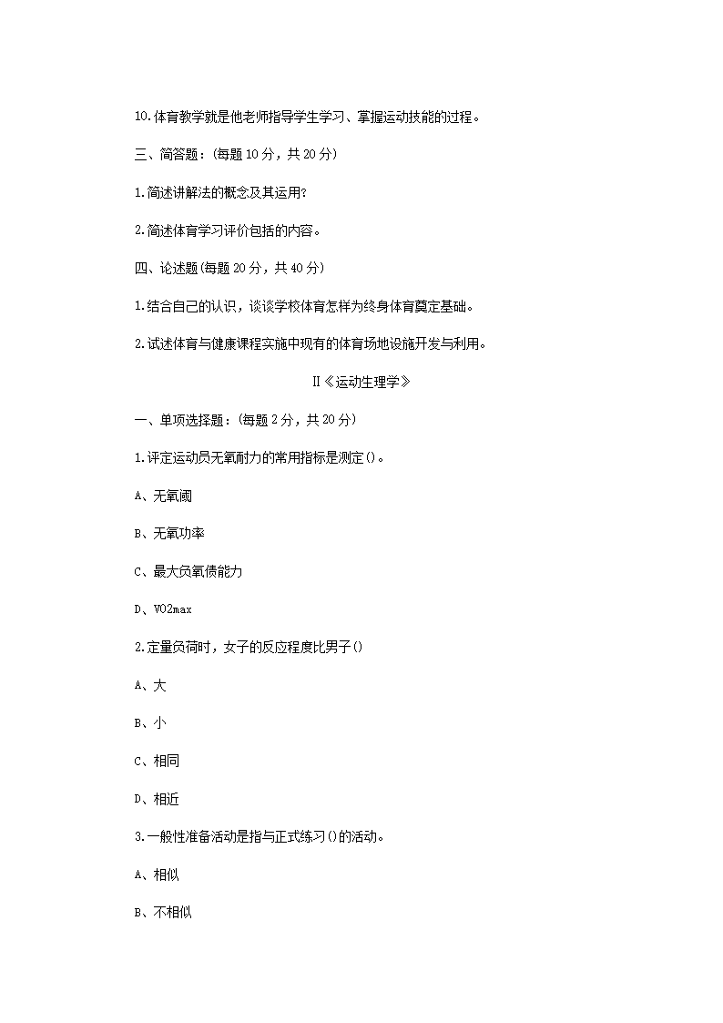 【文档名称】 2016年江苏扬州大学体育综合考研真题A卷(Word版).doc