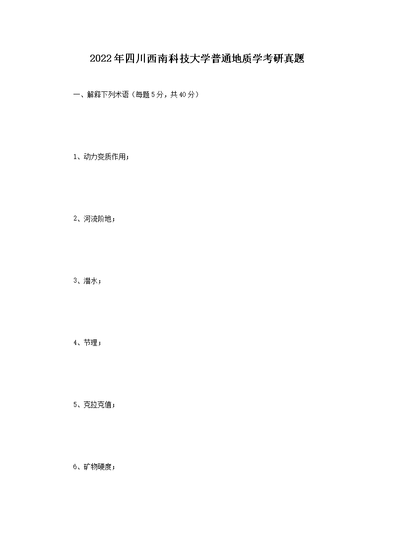 【文档名称】 2022年四川西南科技大学普通地质学考研真题(Word版).doc