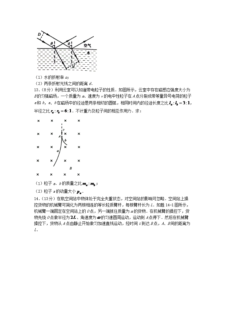 【文档名称】 2022年江苏高考物理试题及答案(Word版).doc