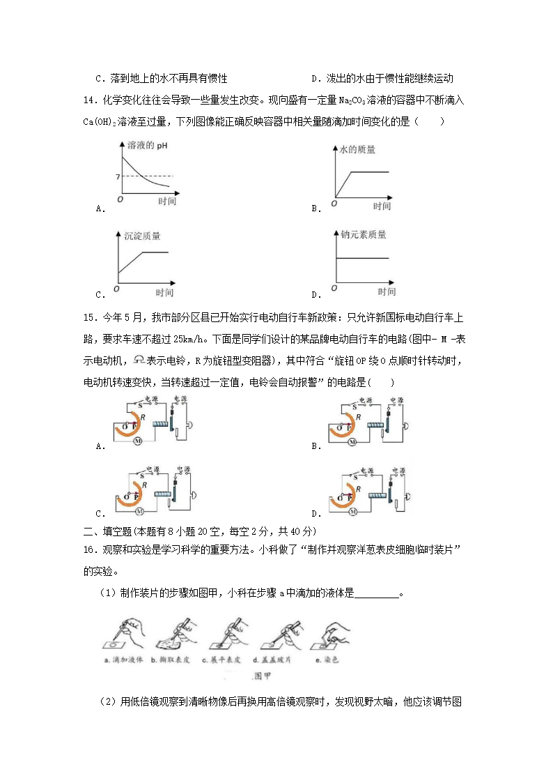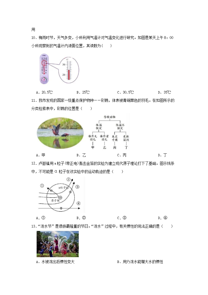 【文档名称】 2022浙江省衢州市中考科学真题及答案(Word版).doc