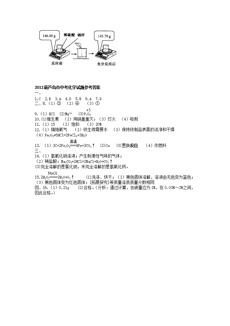 【文档名称】 2012年辽宁省葫芦岛市中考化学真题及答案(Word版).doc