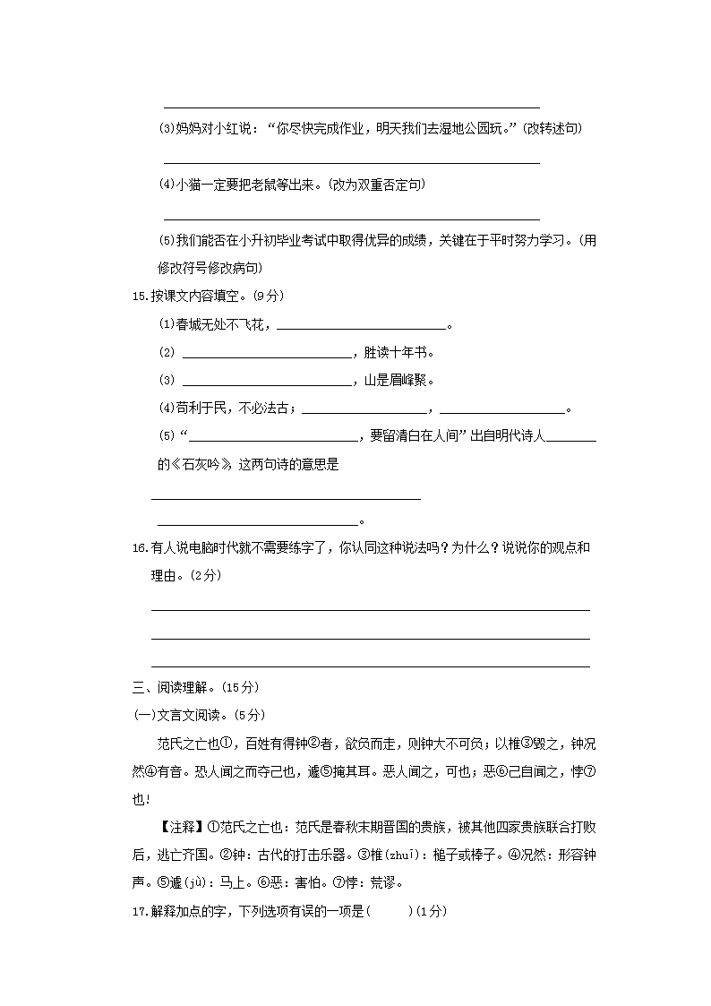 【文档预览】 无忧考网整理发布2021年四川凉山小升初语文真题及答案(Word版),前五页预览如下: