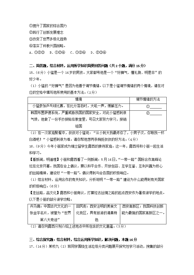 【文档预览】 无忧考网整理发布2017年江苏常州中考政治真题及答案(Word版),前五页预览如下: