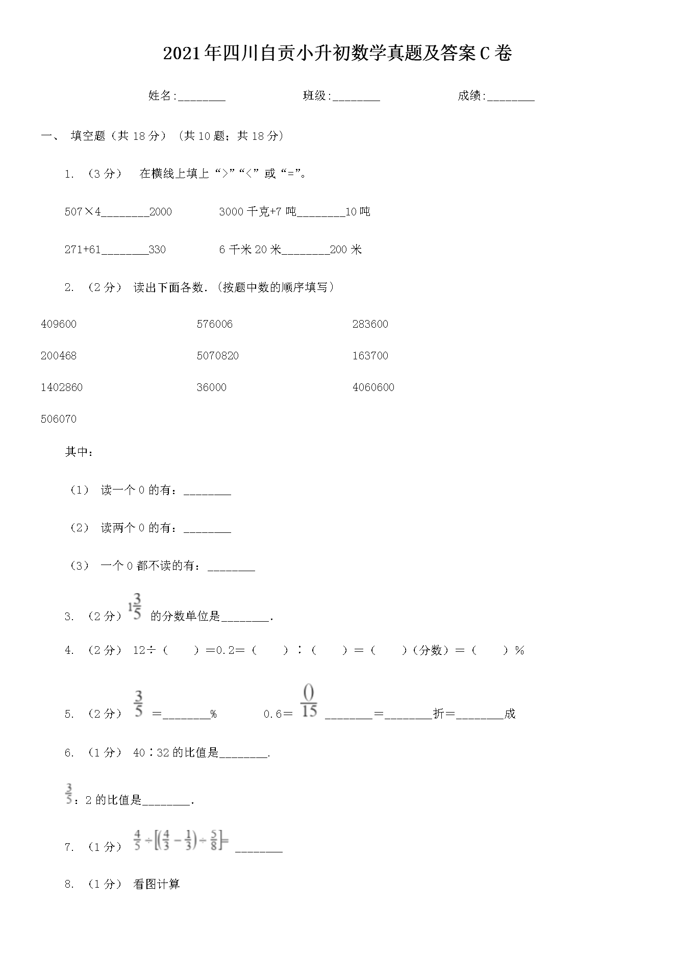 【文档名称】 2021年四川自贡小升初数学真题及答案C卷(Word版).doc