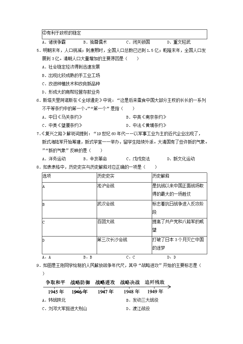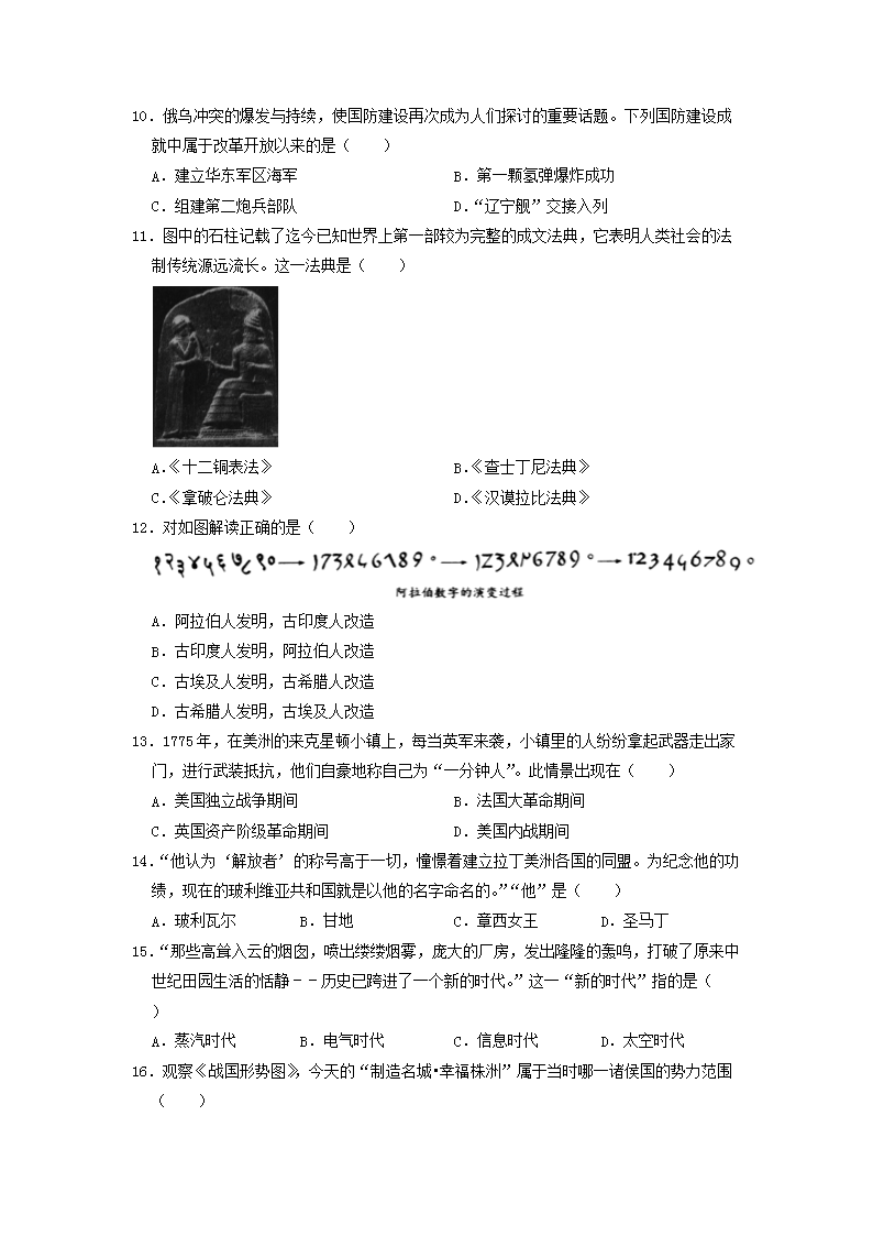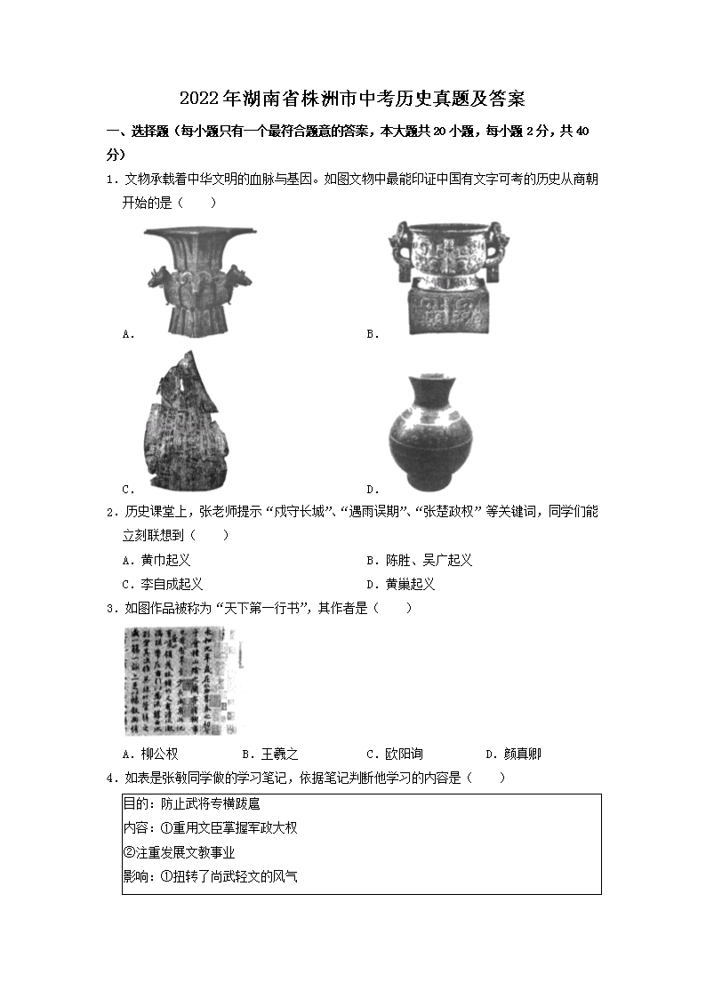 【文档名称】 2022年湖南省株洲市中考历史真题及答案(Word版).doc