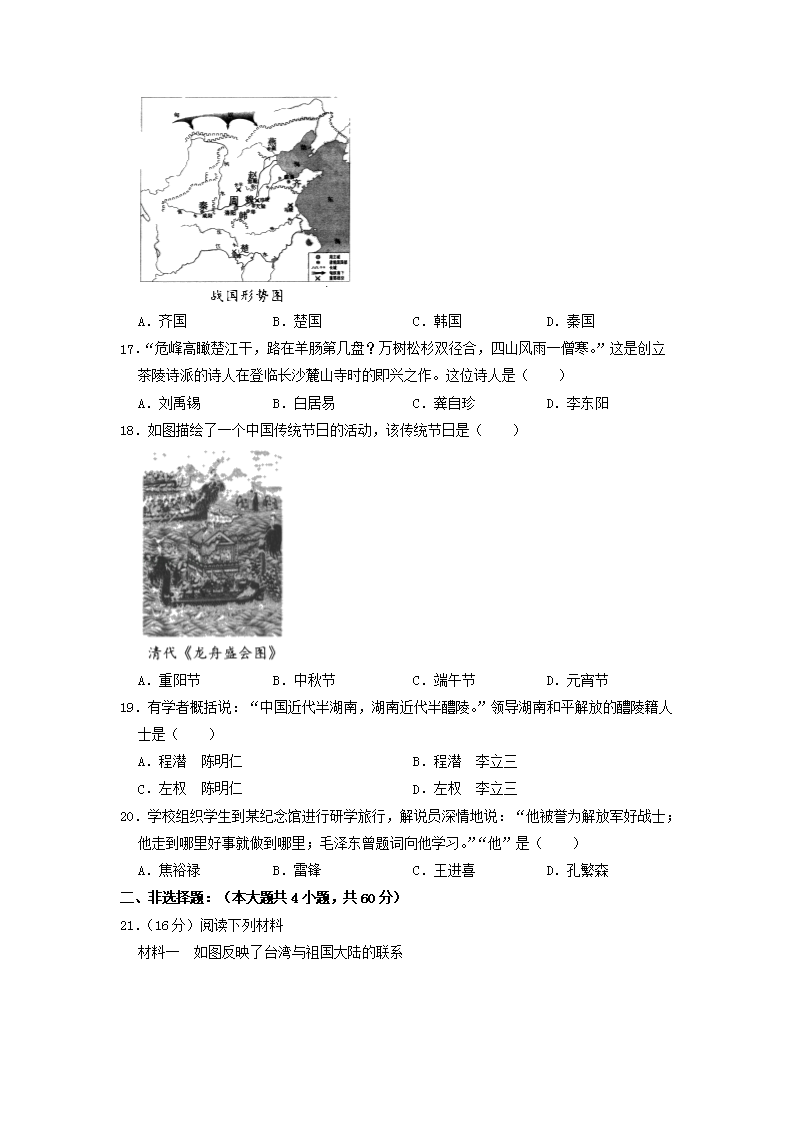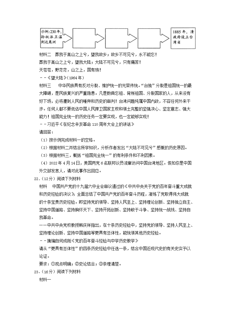 【文档预览】 无忧考网整理发布2022年湖南省株洲市中考历史真题及答案(Word版),前五页预览如下: