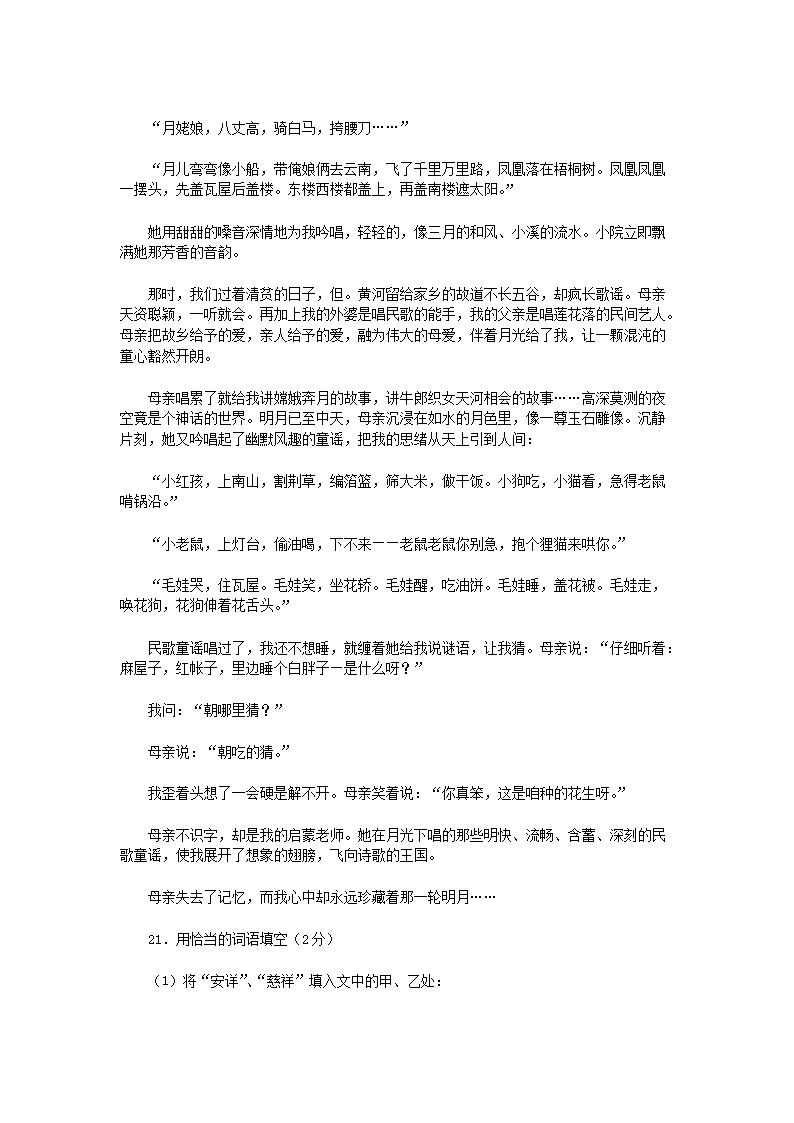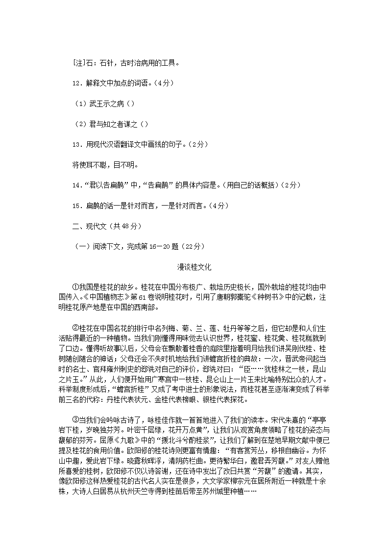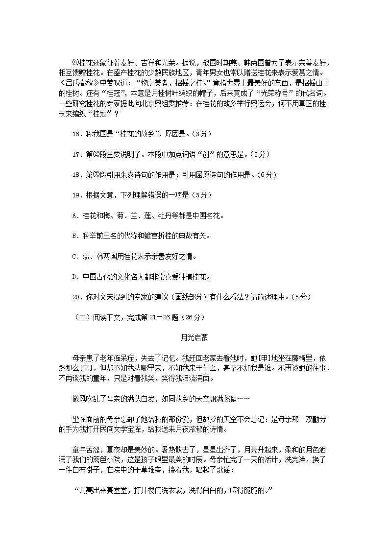 【文档预览】 无忧考网整理发布2009年上海卢湾中考语文真题及答案(Word版),前五页预览如下: