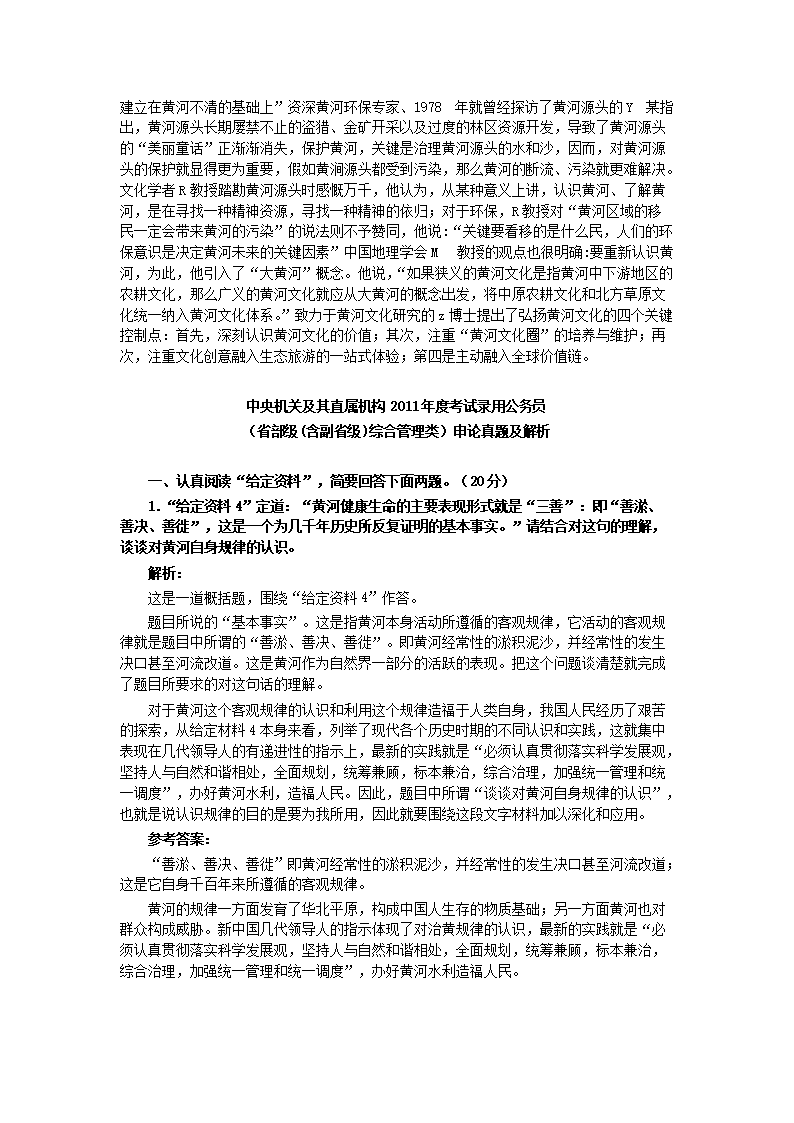 【文档名称】 2011年广东国家公务员申论考试真题及答案-省级(Word版).doc