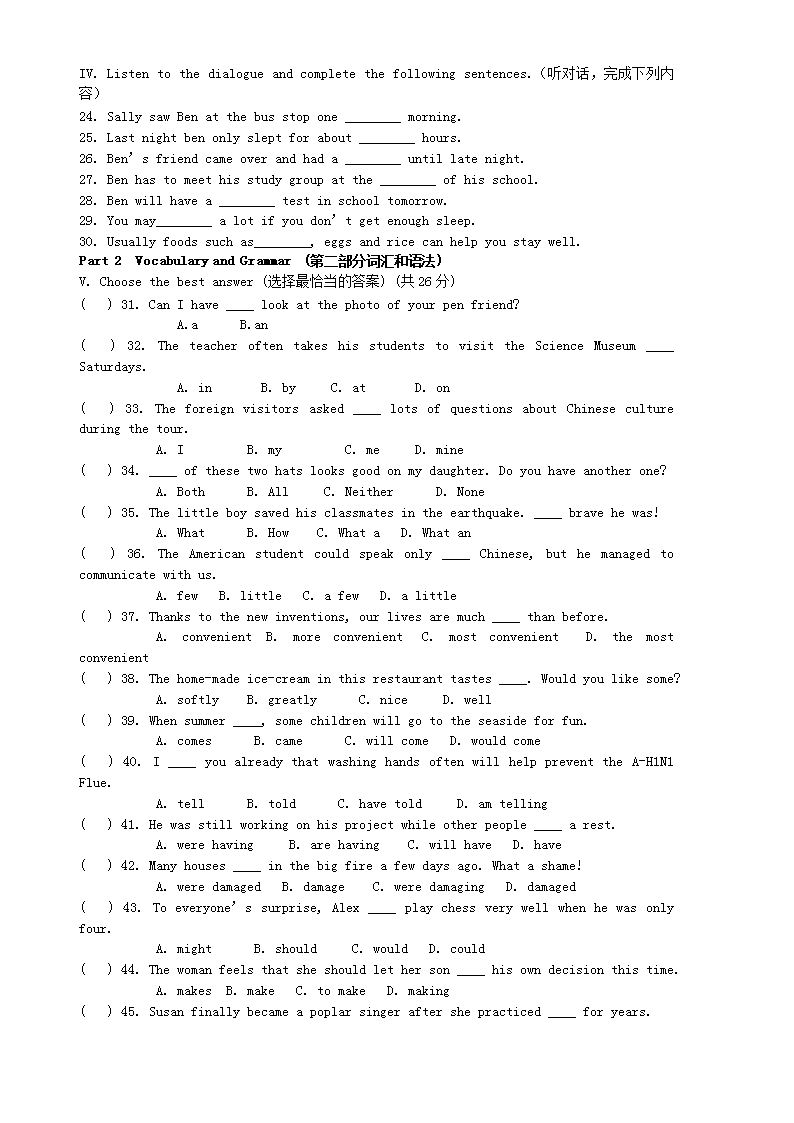 【文档预览】 无忧考网整理发布2009年上海卢湾中考英语真题及答案(Word版),前五页预览如下: