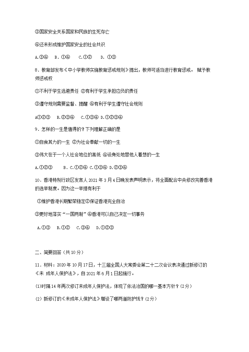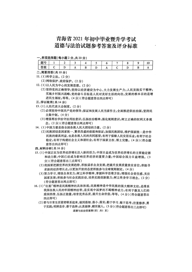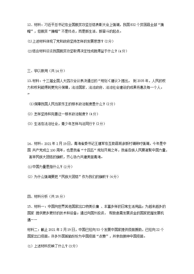 【文档名称】 2021年青海西宁中考政治真题及答案(Word版).doc