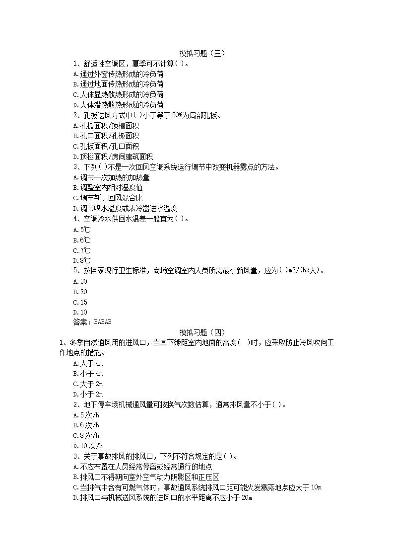 【文档预览】 无忧考网整理发布2022年暖通工程师考试模拟习题及答案(Word版),前五页预览如下: