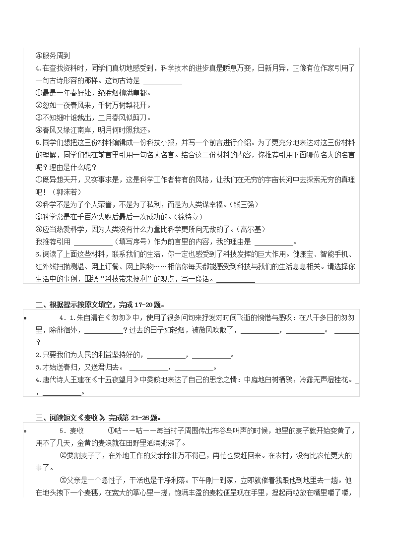【文档预览】 无忧考网整理发布2022年北京市东城区小升初语文考试真题(Word版),前五页预览如下: