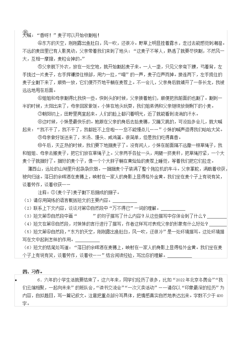 【文档名称】 2022年北京市东城区小升初语文考试真题(Word版).doc