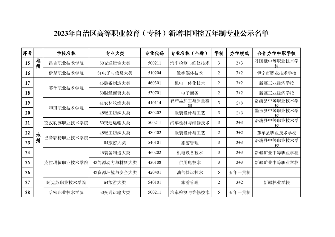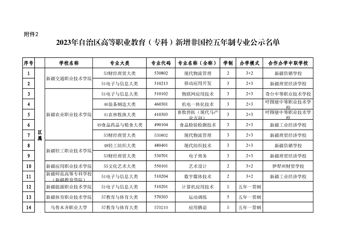 原文标题:关于2023年自治区高等职业教育(专科)新增非国控专业的公示