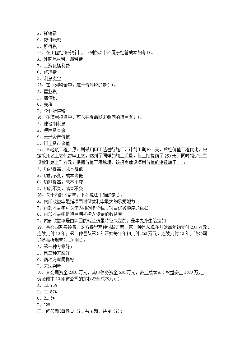 【文档名称】 2016年山东建筑大学工程经济学考研真题B卷(Word版).doc
