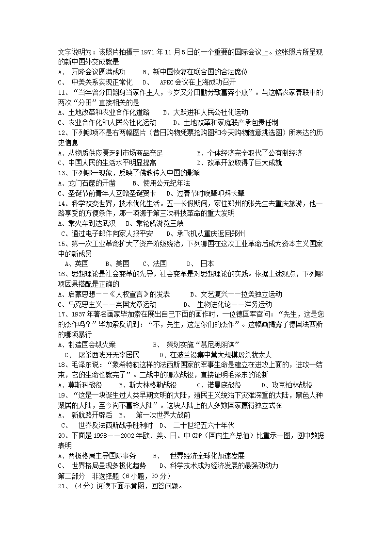 【文档名称】 2007年河南平顶山中考历史真题及答案(Word版).doc