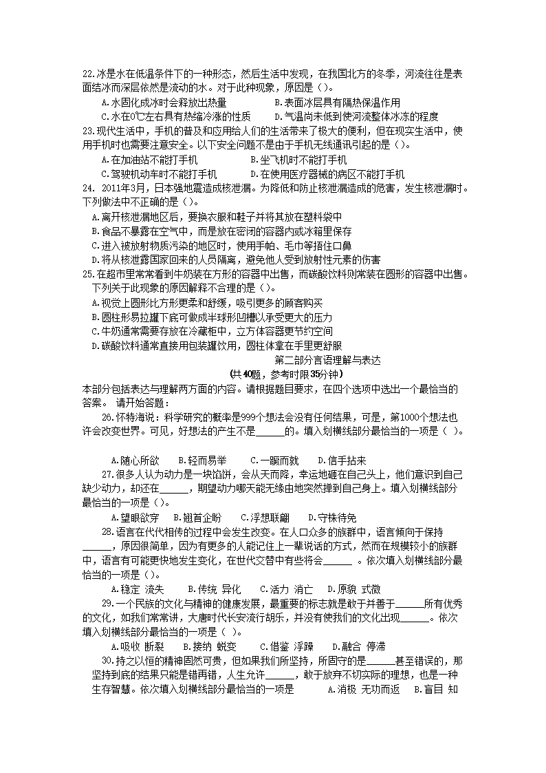 【文档名称】 2012年广东国家公务员行测考试真题及答案(Word版).doc