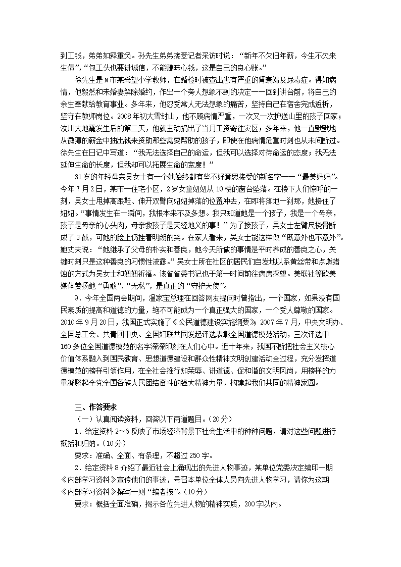 【文档名称】 2012年北京国家公务员申论考试真题及答案-省级(Word版).doc