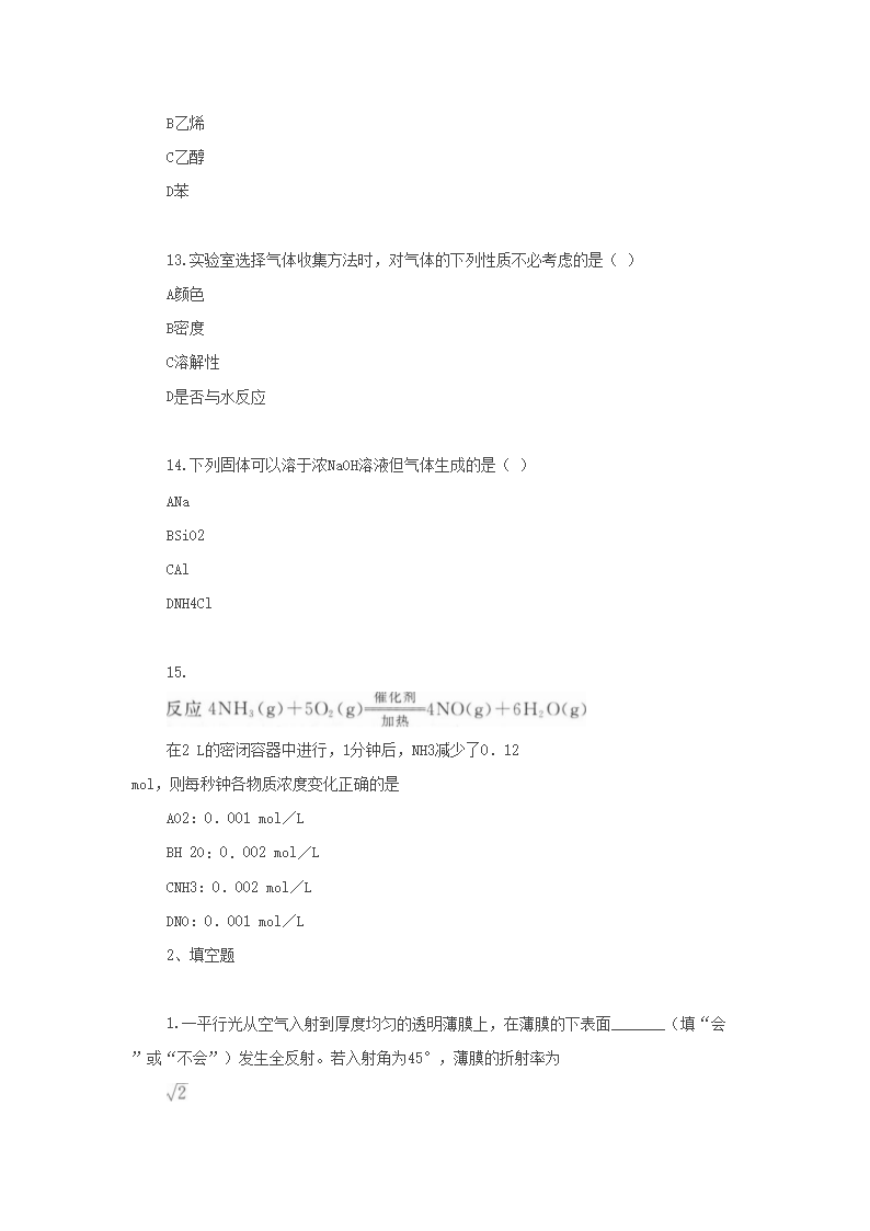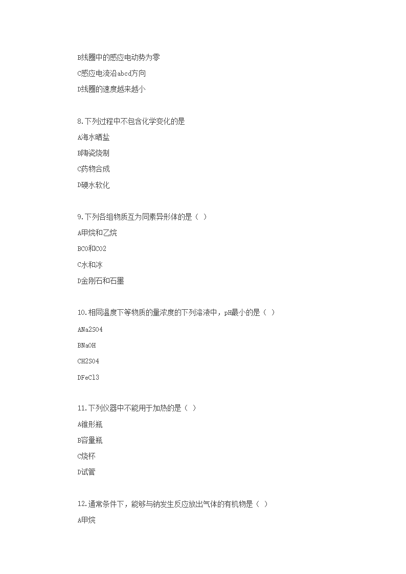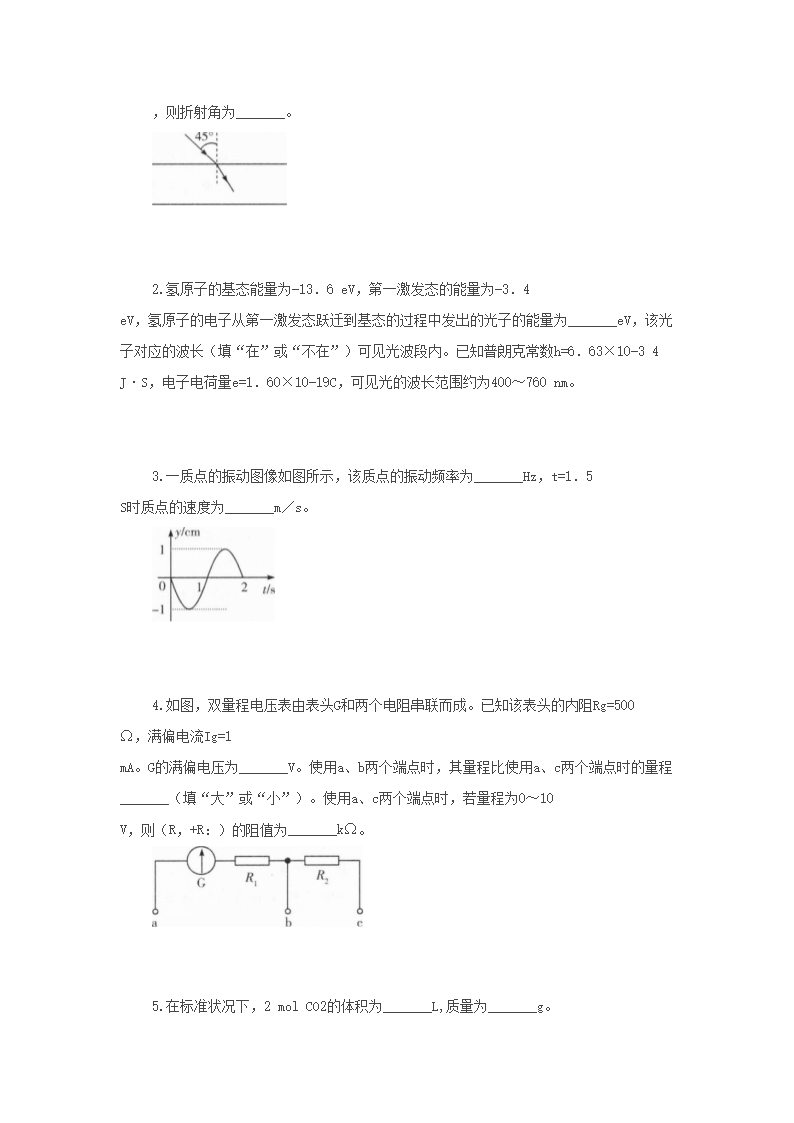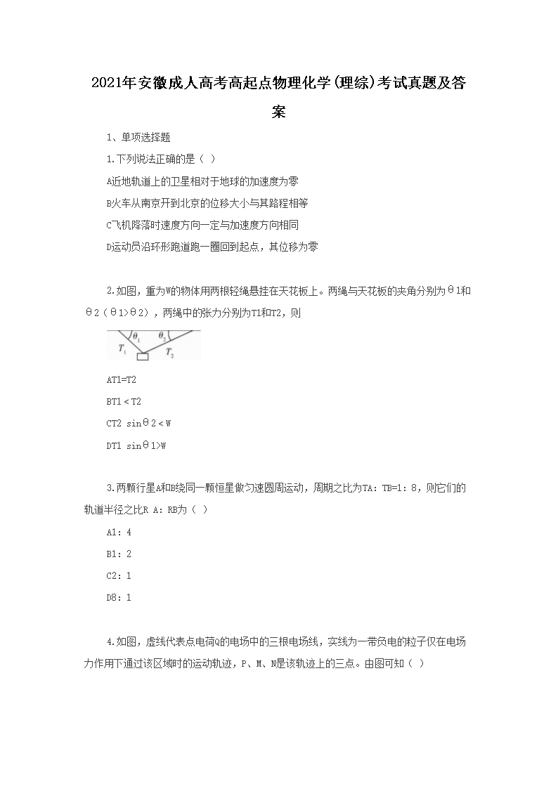【文档名称】 2021年安徽成人高考高起点物理化学(理综)考试真题及答案(Word版).doc