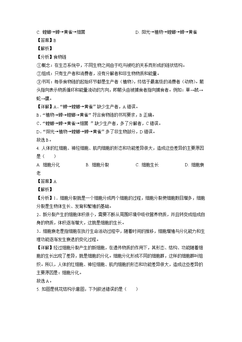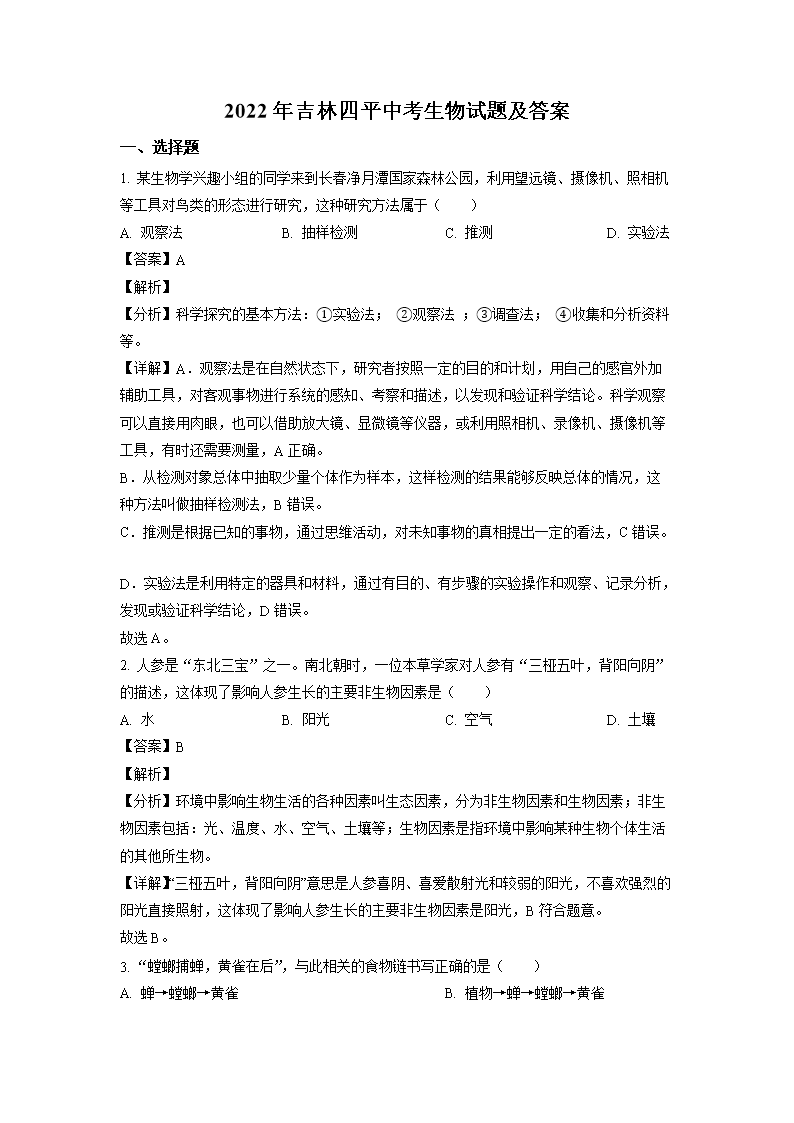 【文档预览】 无忧考网整理发布2022年吉林四平中考生物试题及答案(Word版),前五页预览如下: