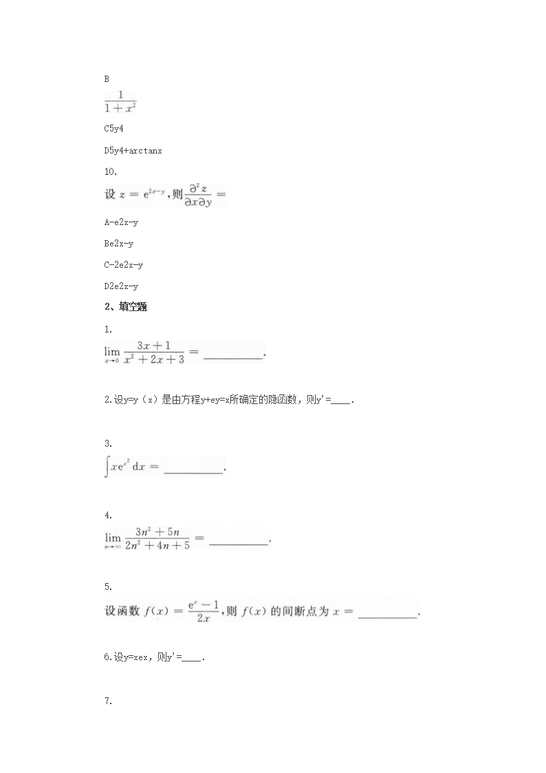 【文档名称】 2021年北京成人高考专升本高数(一)考试真题及答案(Word版).doc