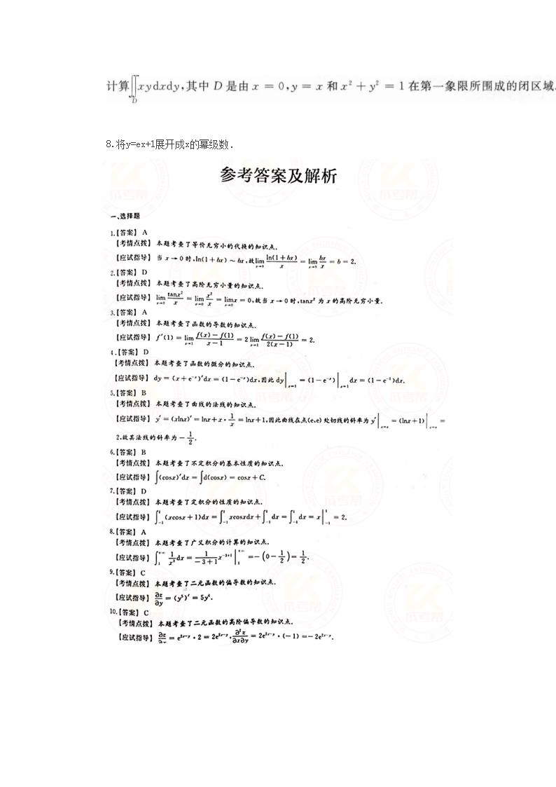 【文档预览】 无忧考网整理发布2021年北京成人高考专升本高数(一)考试真题及答案(Word版),前五页预览如下:
