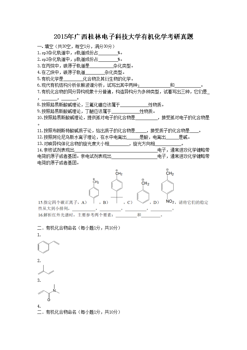 【文档名称】 2015年广西桂林电子科技大学有机化学考研真题(Word版).doc